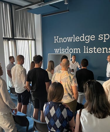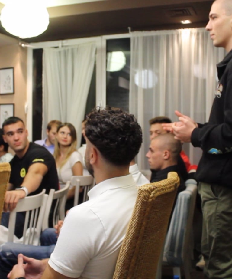1 year anniversey event, organised in Varna, Bulgaria and led by a successful entrepreneur. The event was an open discussion and the participants asked various questions, covering topics from business to mental wellbeing.