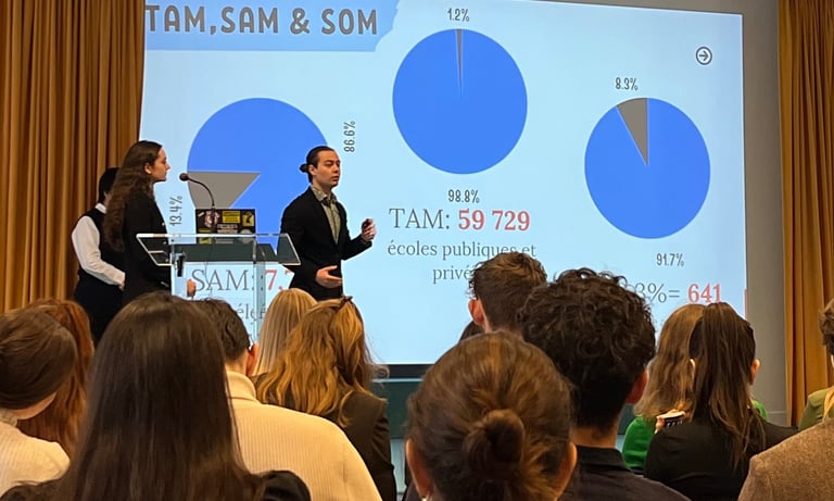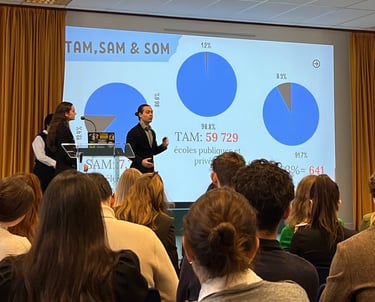 Photo of Co-Founder Viktor Hristov presenting at a conferrence, "Banque de France"